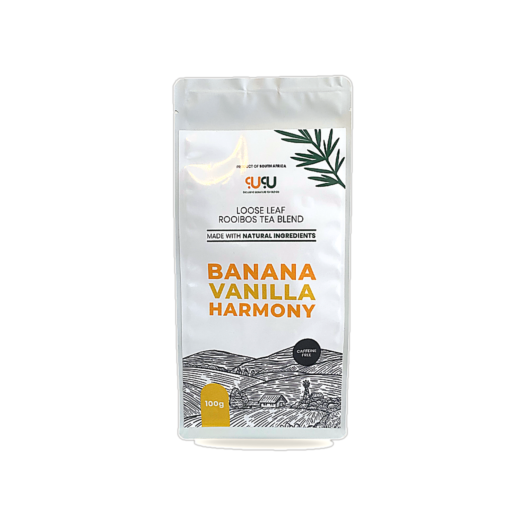 Banana Vanilla Harmony blends mellow Rooibos with ripe banana sweetness and soft vanilla creaminess. Indulgent yet wholesome, this calming infusion is perfect for winding down in the evening.